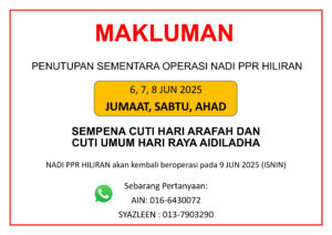 MAKLUMAN PENUTUPAN SEMENTARA OPERASI NADI PPR HILIRAN SEMPENA HARI ARAFAH & AIDILADHA