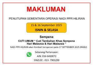 MAKLUMAN PENUTUPAN SEMENTARA OPERASI NADI SEMPENA CUTI TAMBAHAN KHAS DAN HARI MALAYSIA
